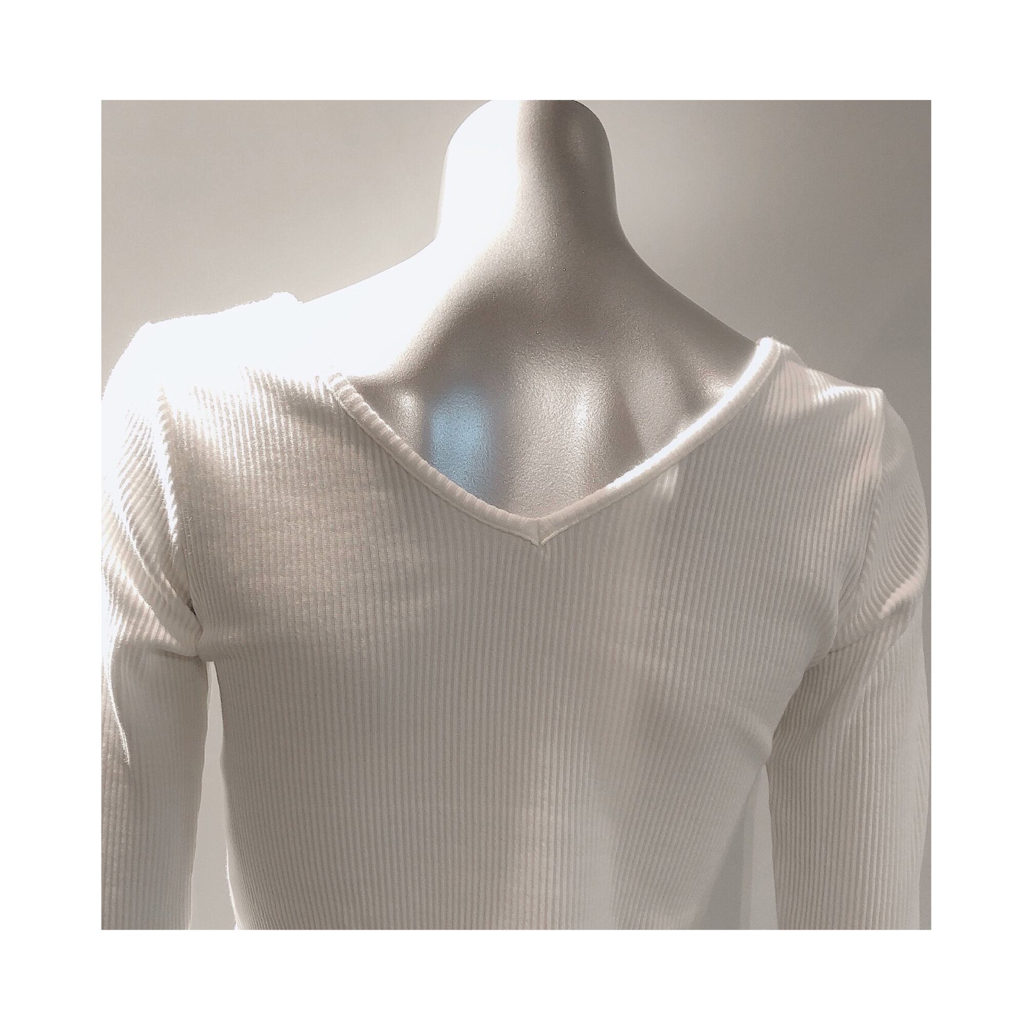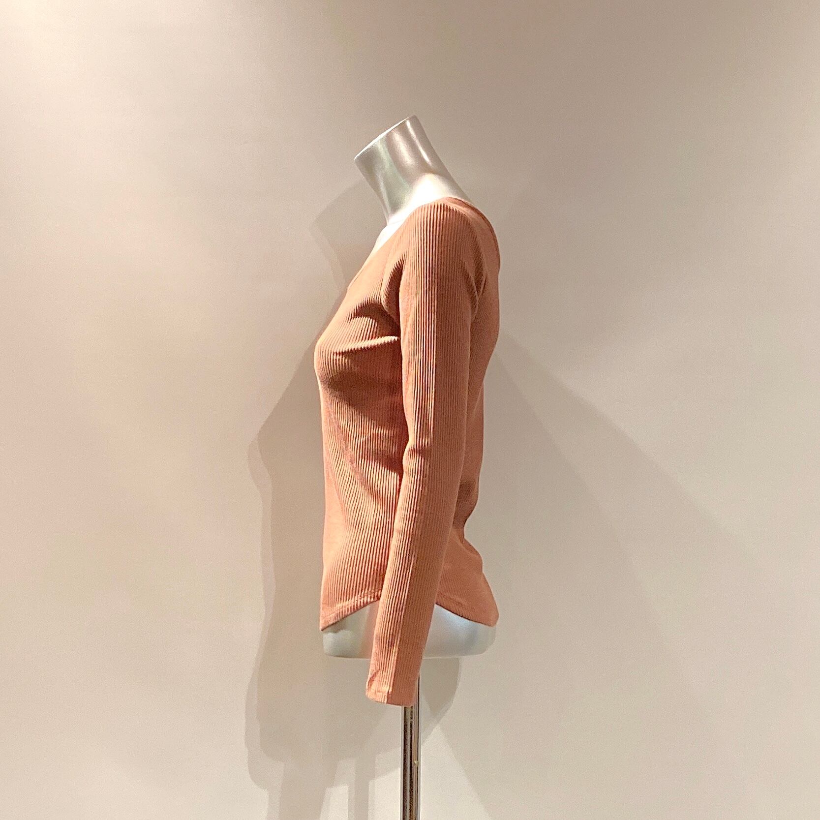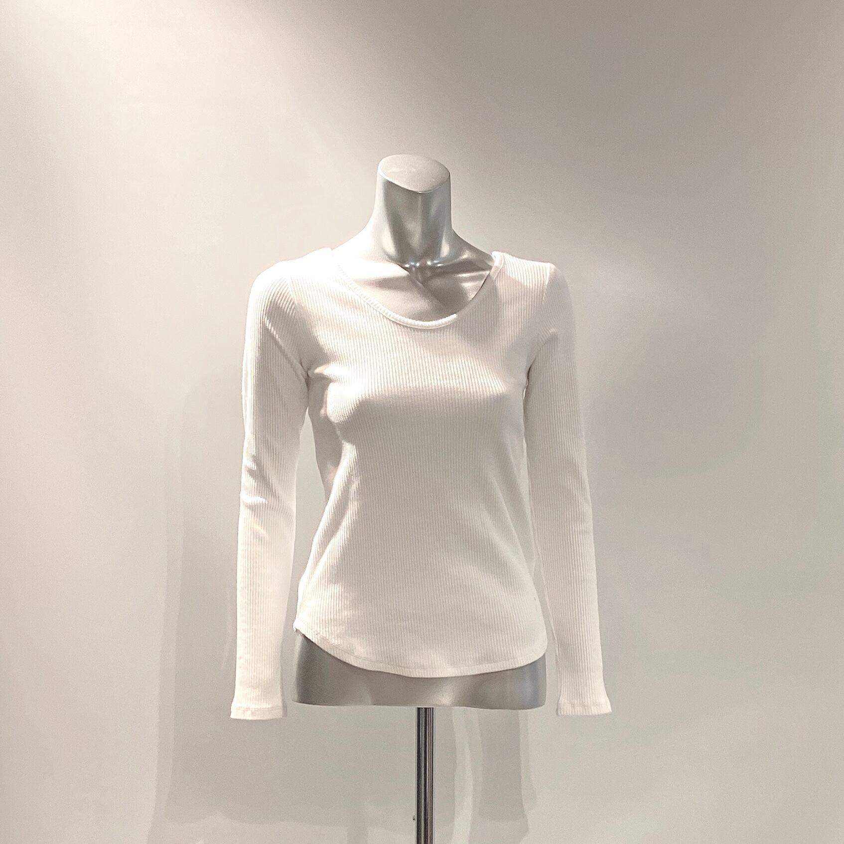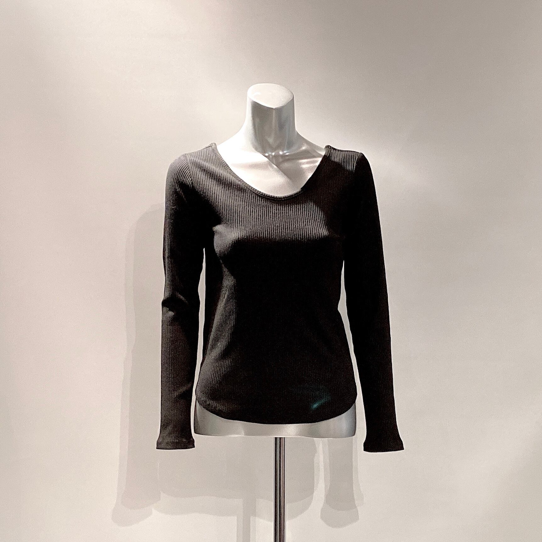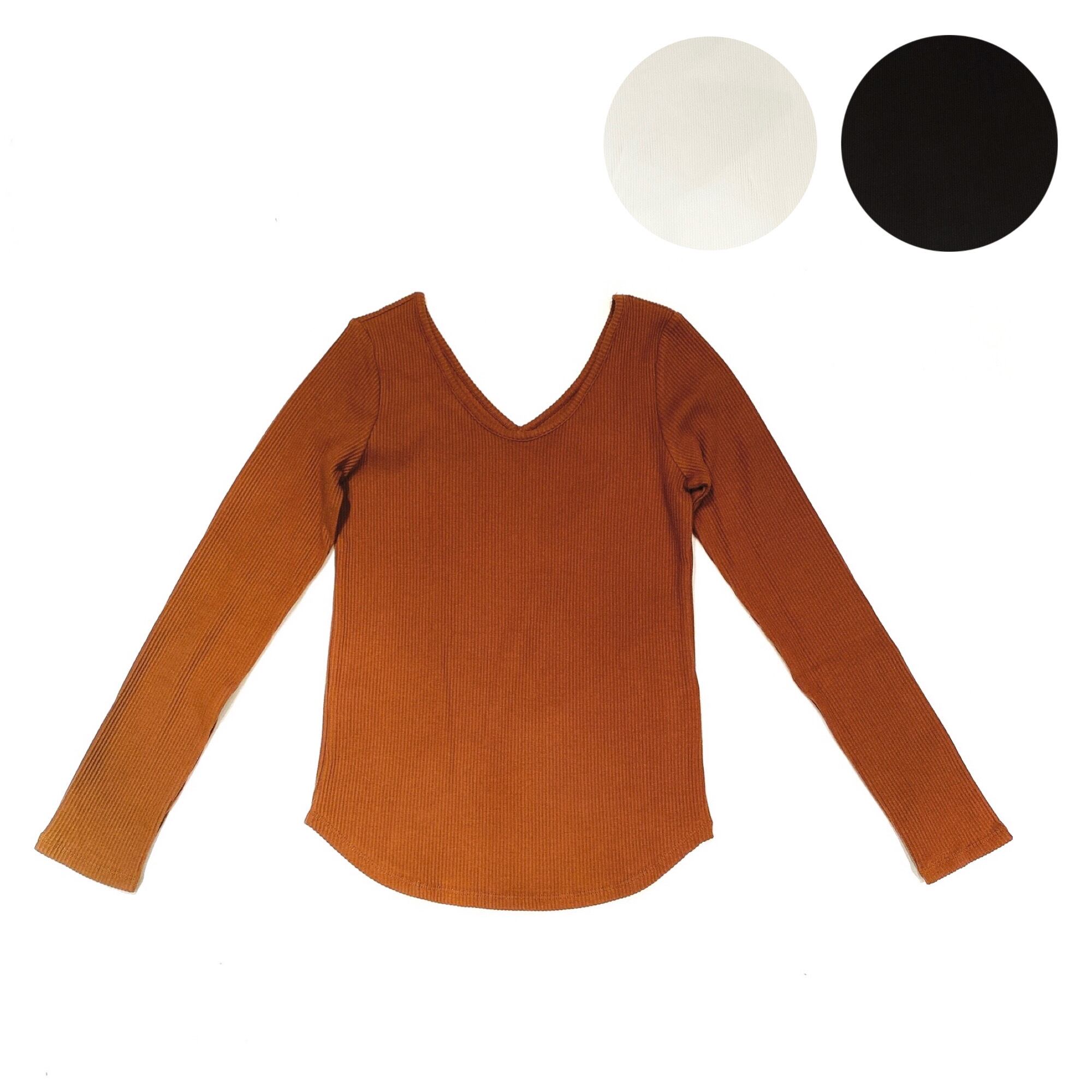 【ayane】2way リブカットソー Vネック ロンT シンプル ベーシック