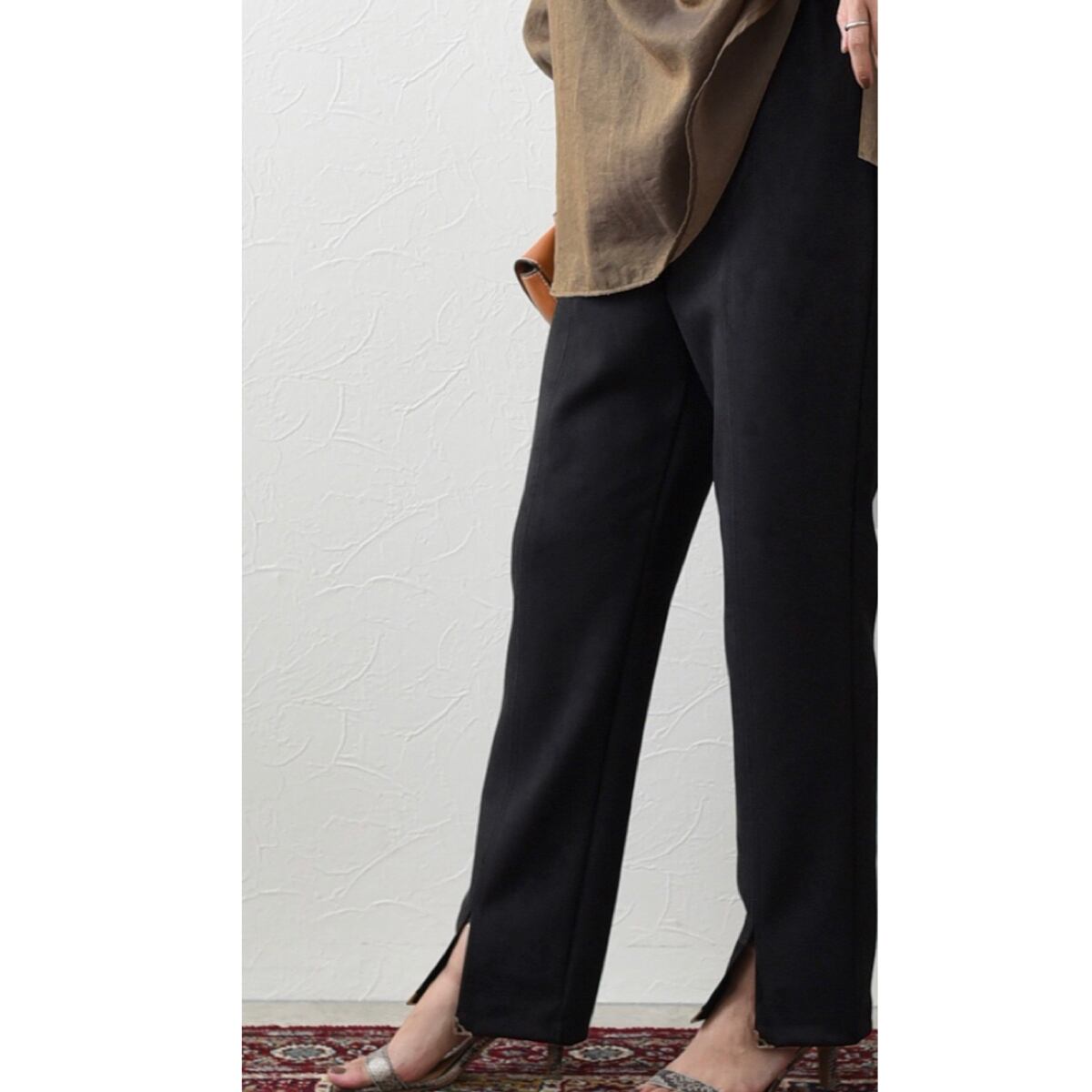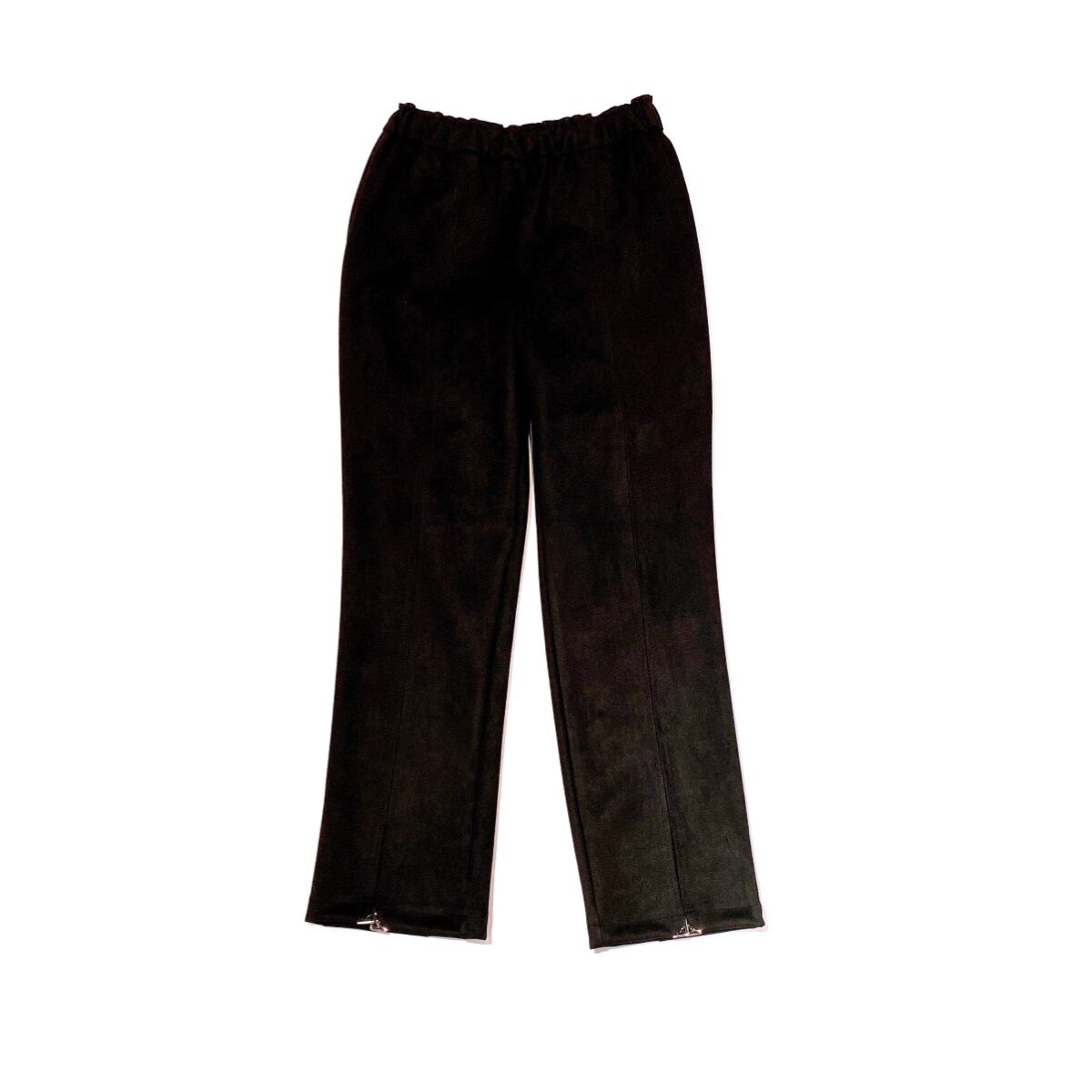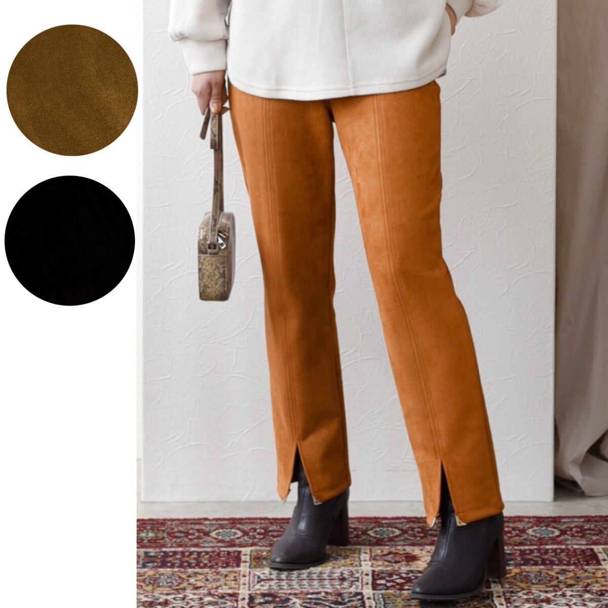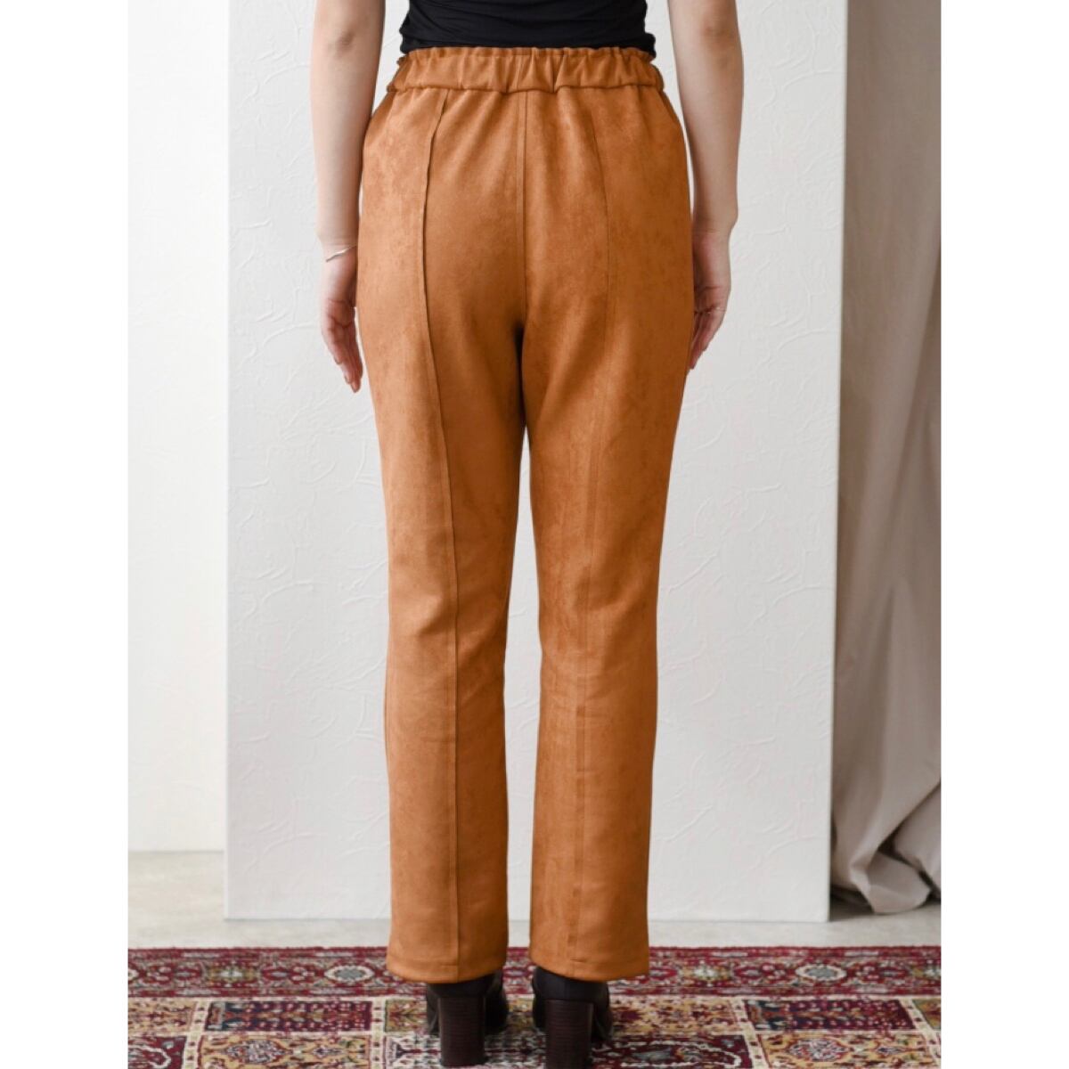 【EimeeLowエイミーロウ】額縁パーツ付きシガレットパンツ スエード ボンディング ストレッチ テーパード 81094F