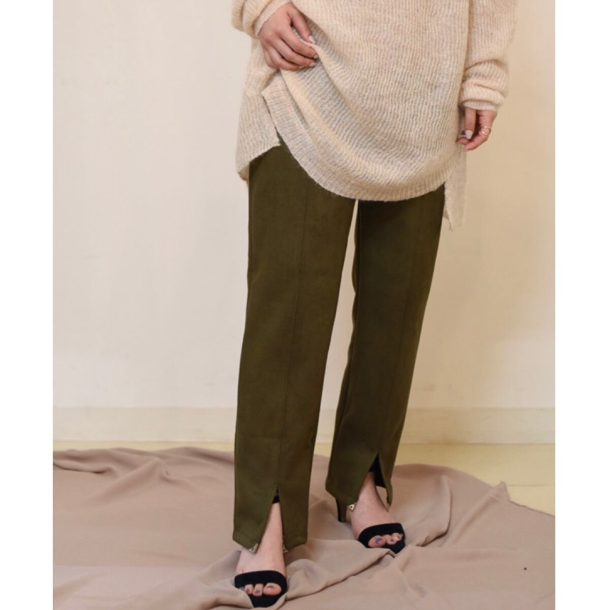 フロントスリットの額縁パーツデザインがポイントのストレッチシガレットパンツです。