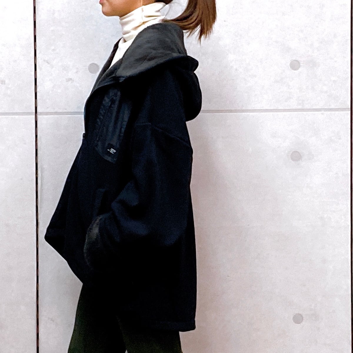 ゆったり袖なので厚手のニットや、ドルマンもスムーズに着られる、旬な1枚。