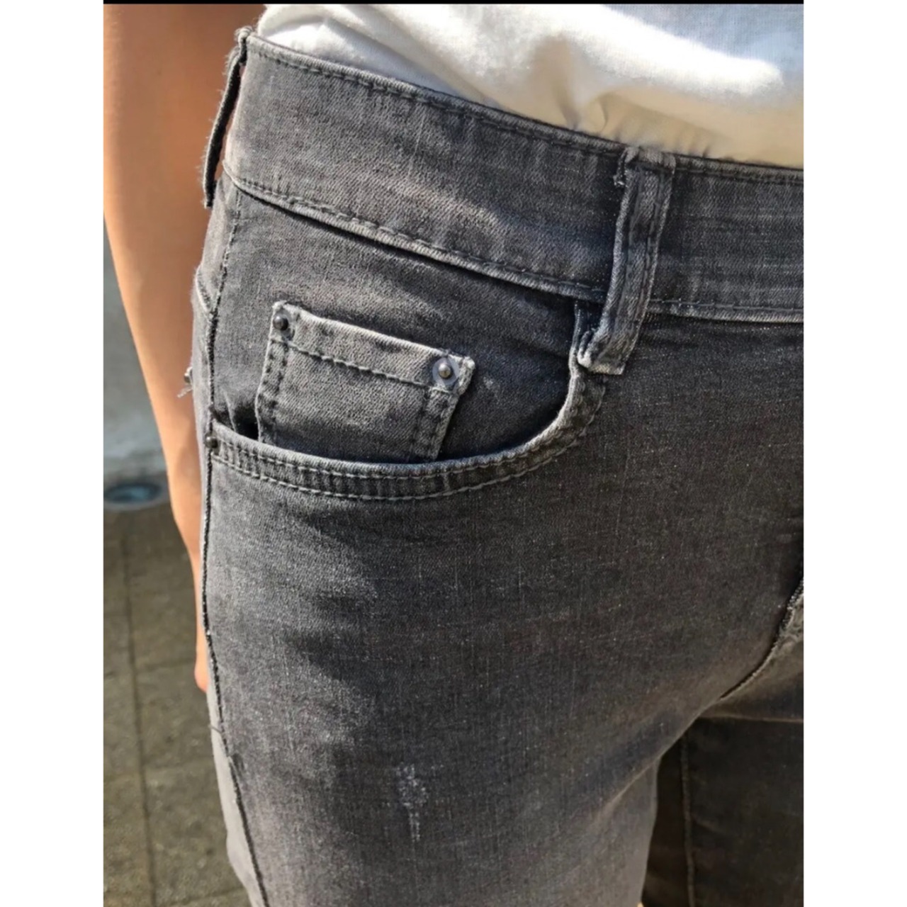 【praiaプライア】サイドスリットスキニーデニム 美脚ジーンズ ダメージ加工 グレージュ ブラック 3755C