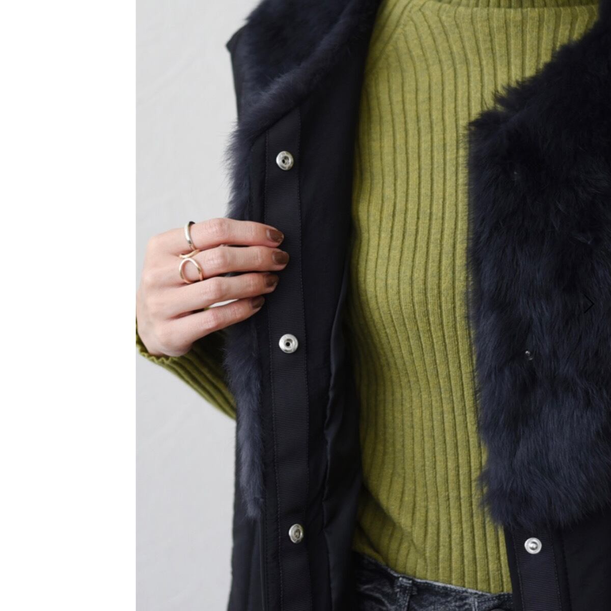 表地のシャカっとした素材感と、ファーの異素材な組み合わせが魅力的。