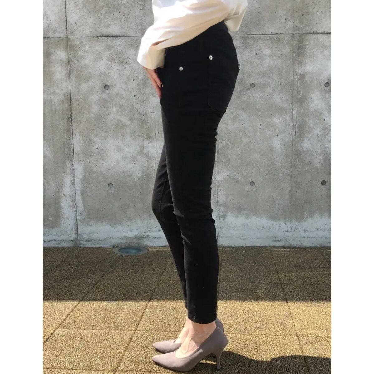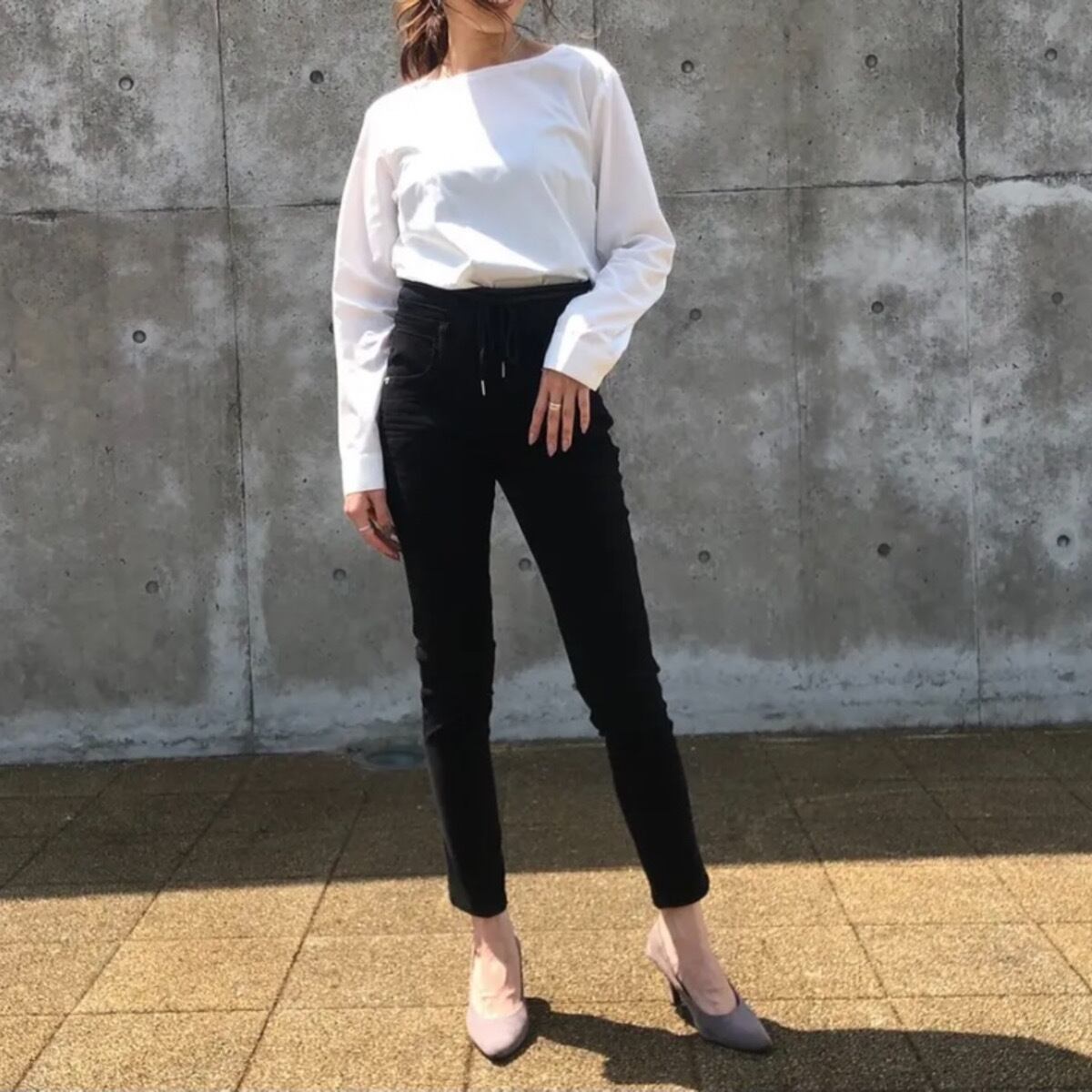 メンズライクな加工の生地と、シルエットはテーパード気味で、カジュアル綺麗な大人のリラックスパンツ。