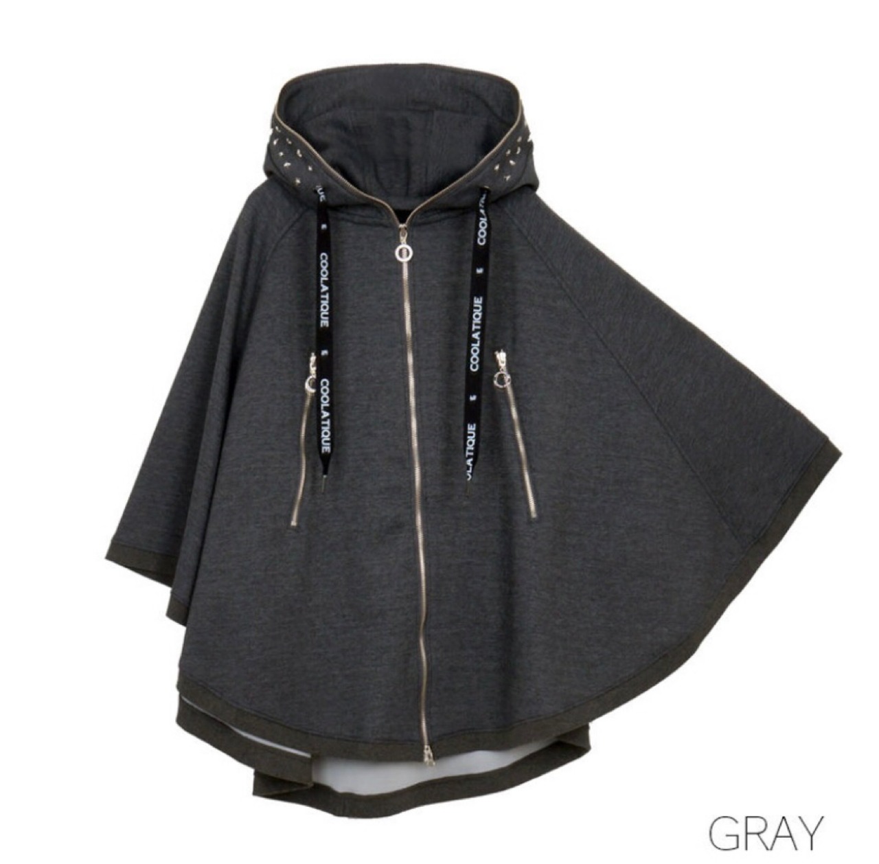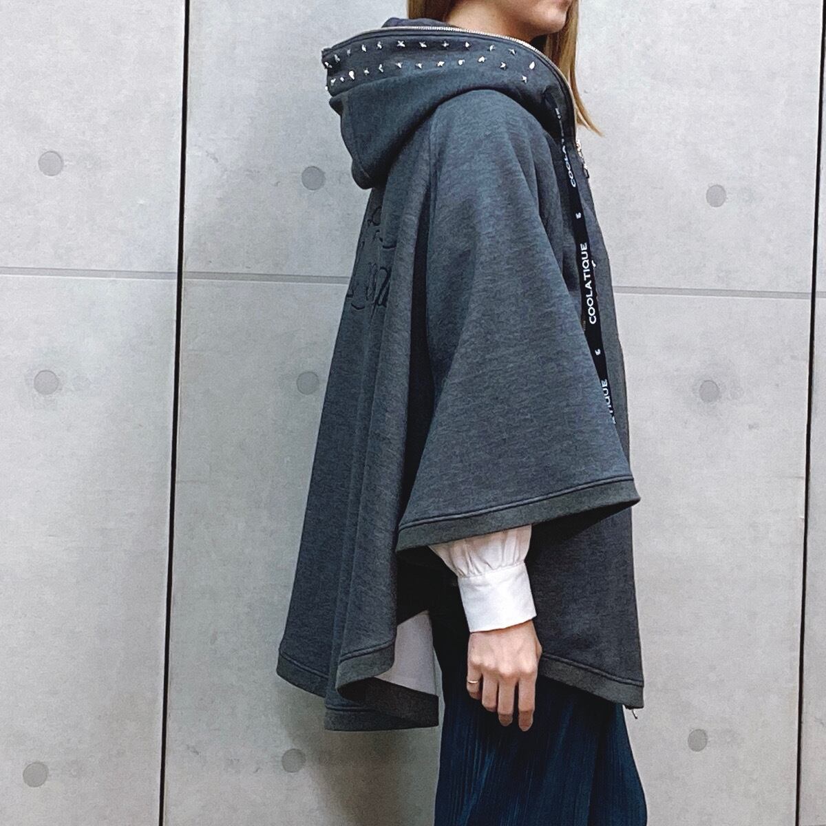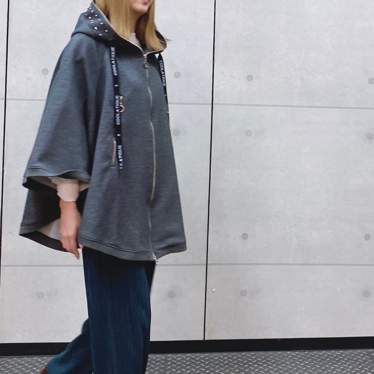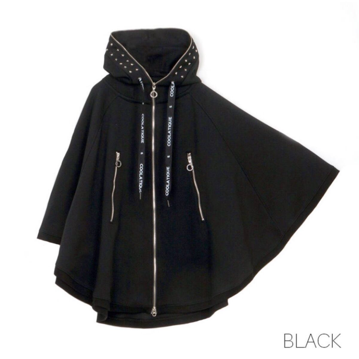 【COOLAクーラ】スタースタッズケープ ポンチョ フード パーカー マタニティ コート アウター 体型カバー ロゴテープ CQ-37070