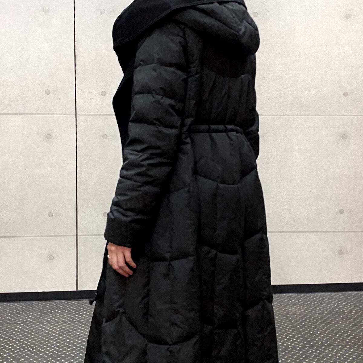 チェスターコートとフードコートをドッキングさせた様なデザインで、「エレガント」と「カジュアル」を両立さす。