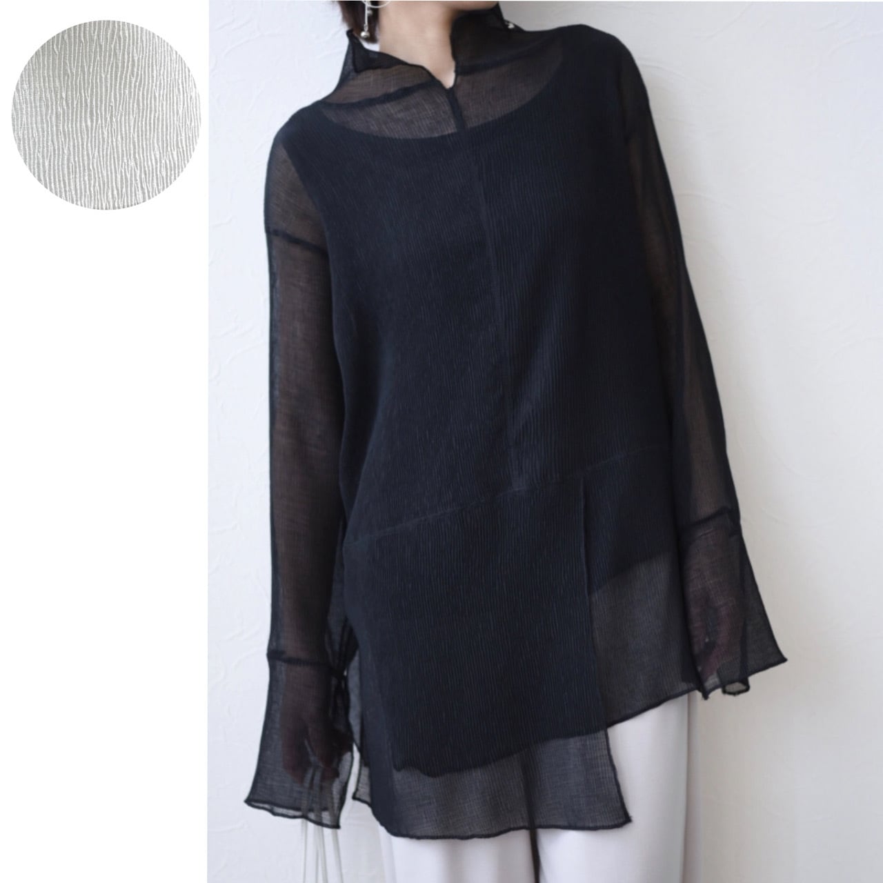 【Eimee Law エイミーロウ】シアープリーツ楊柳2WAYTOPS ブラウス プルオーバー Vネック ゆる チュニック 81421S