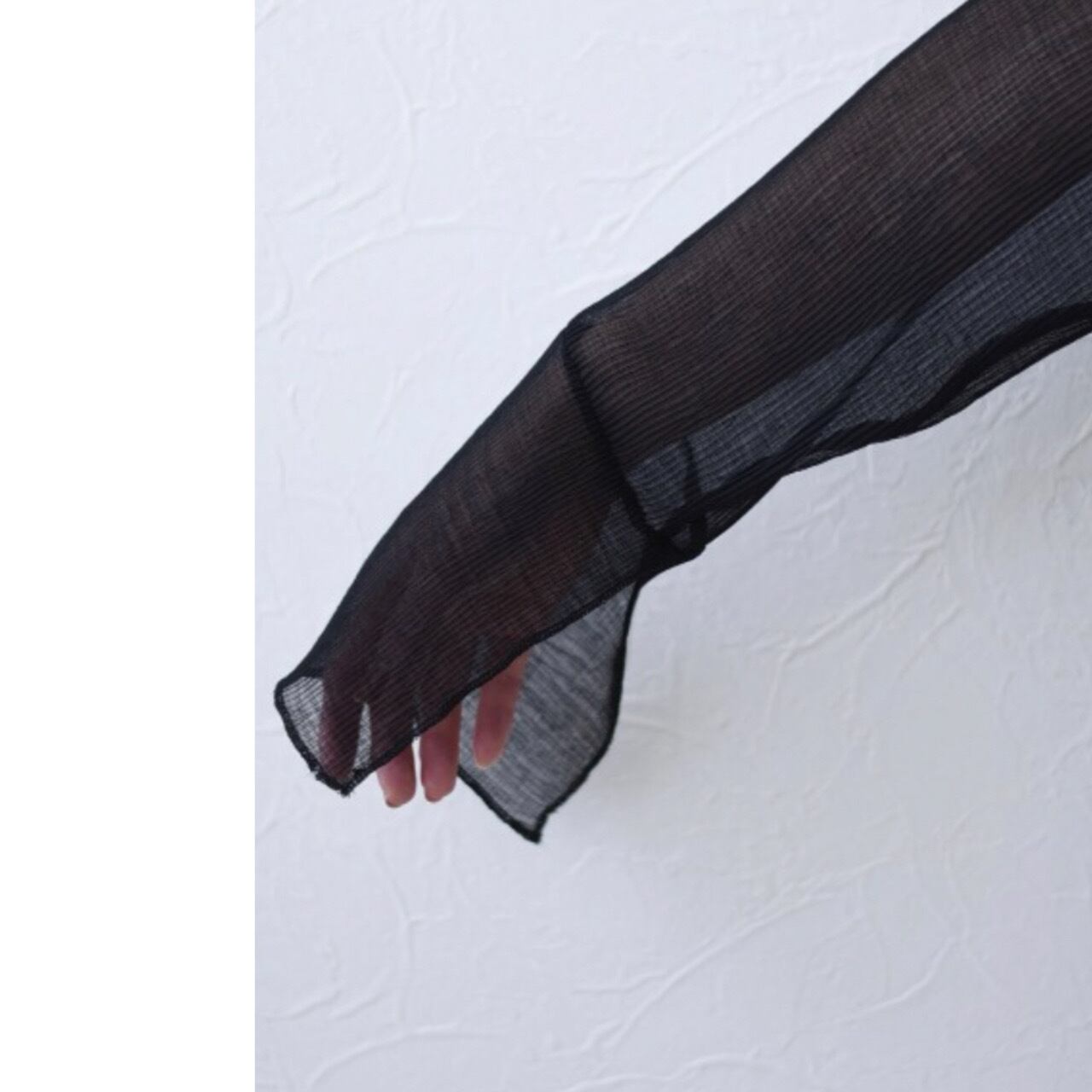 透け感とスリットで程よい肌見せが女性らしい印象に。