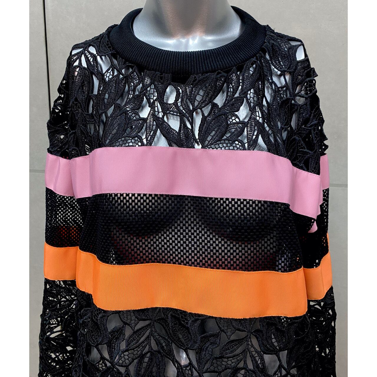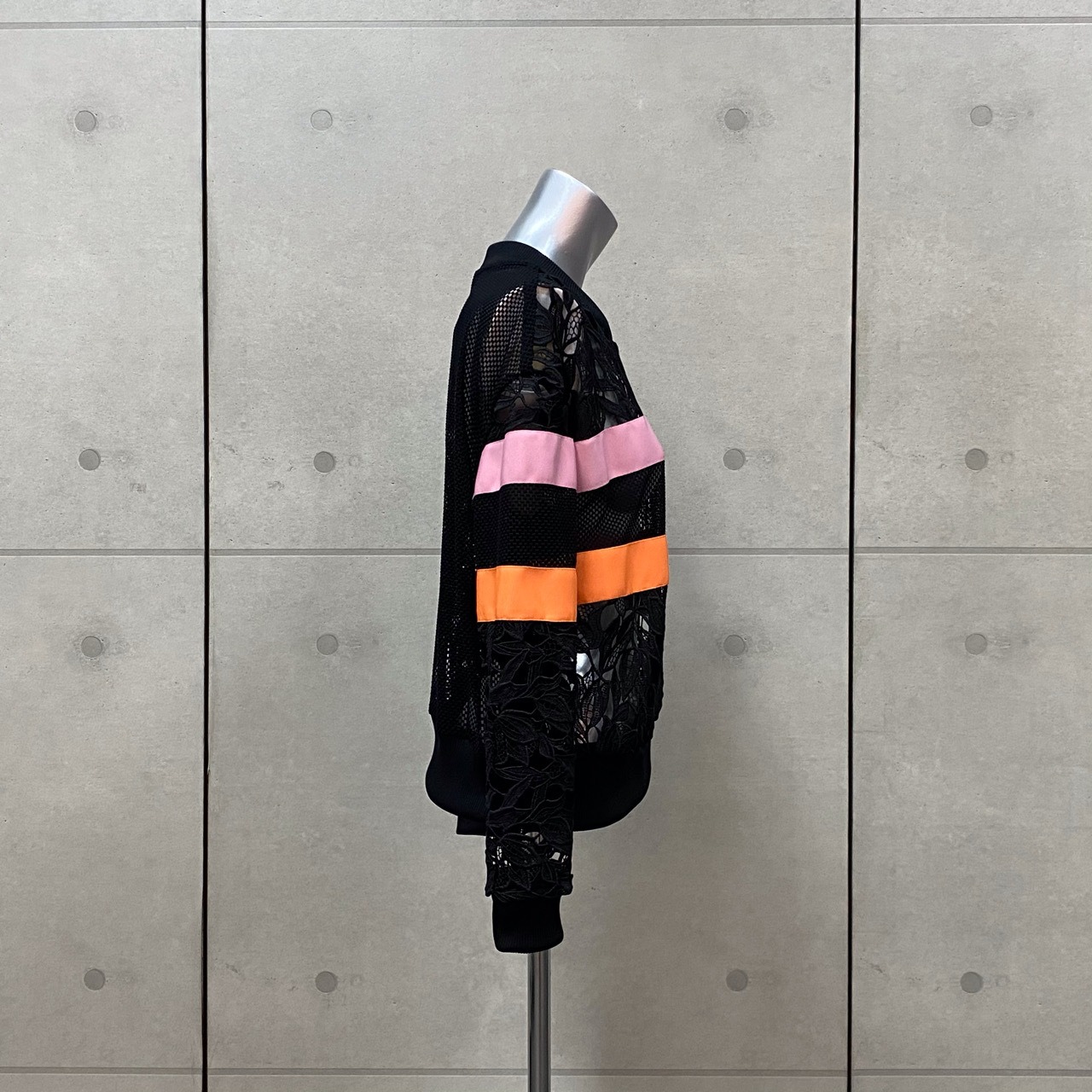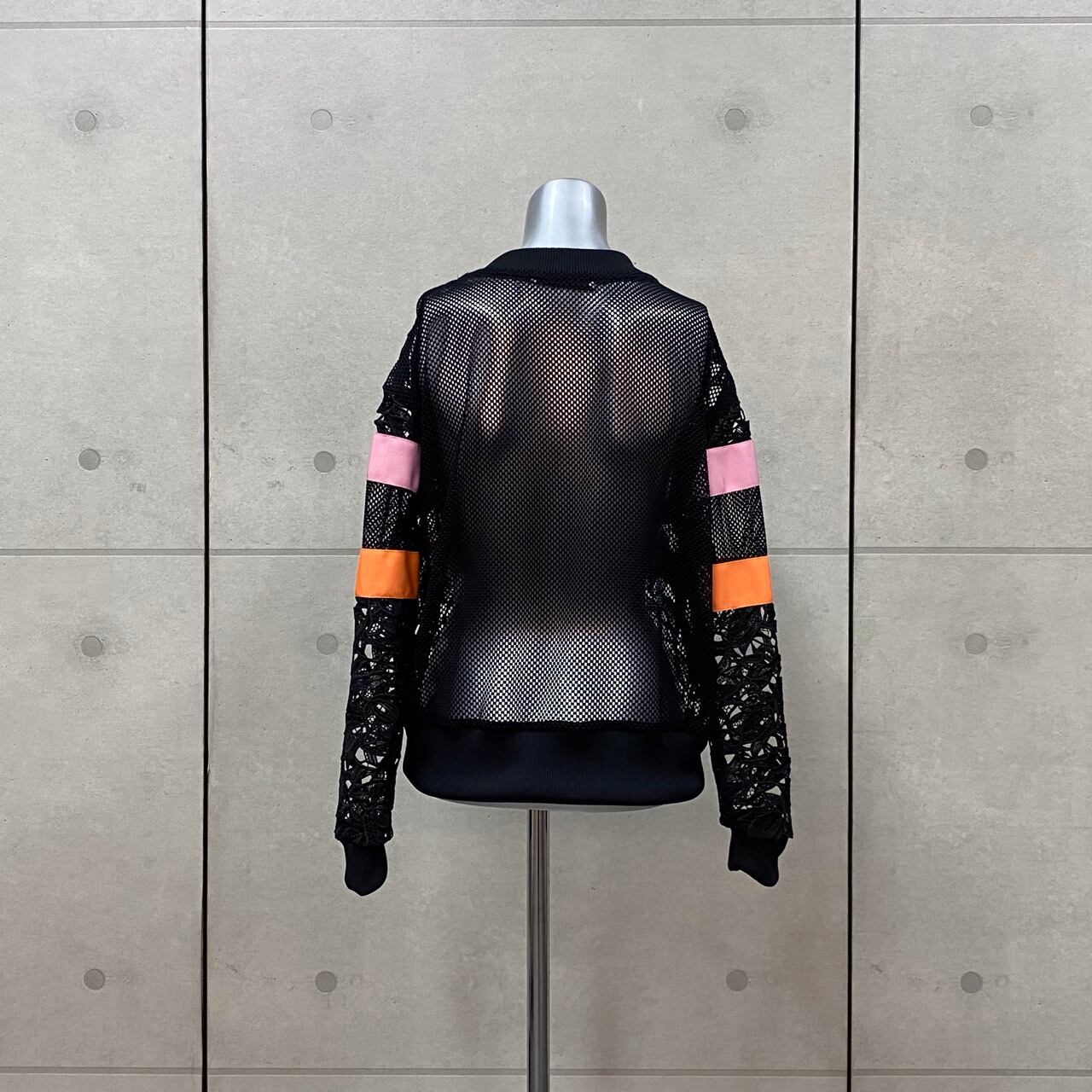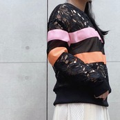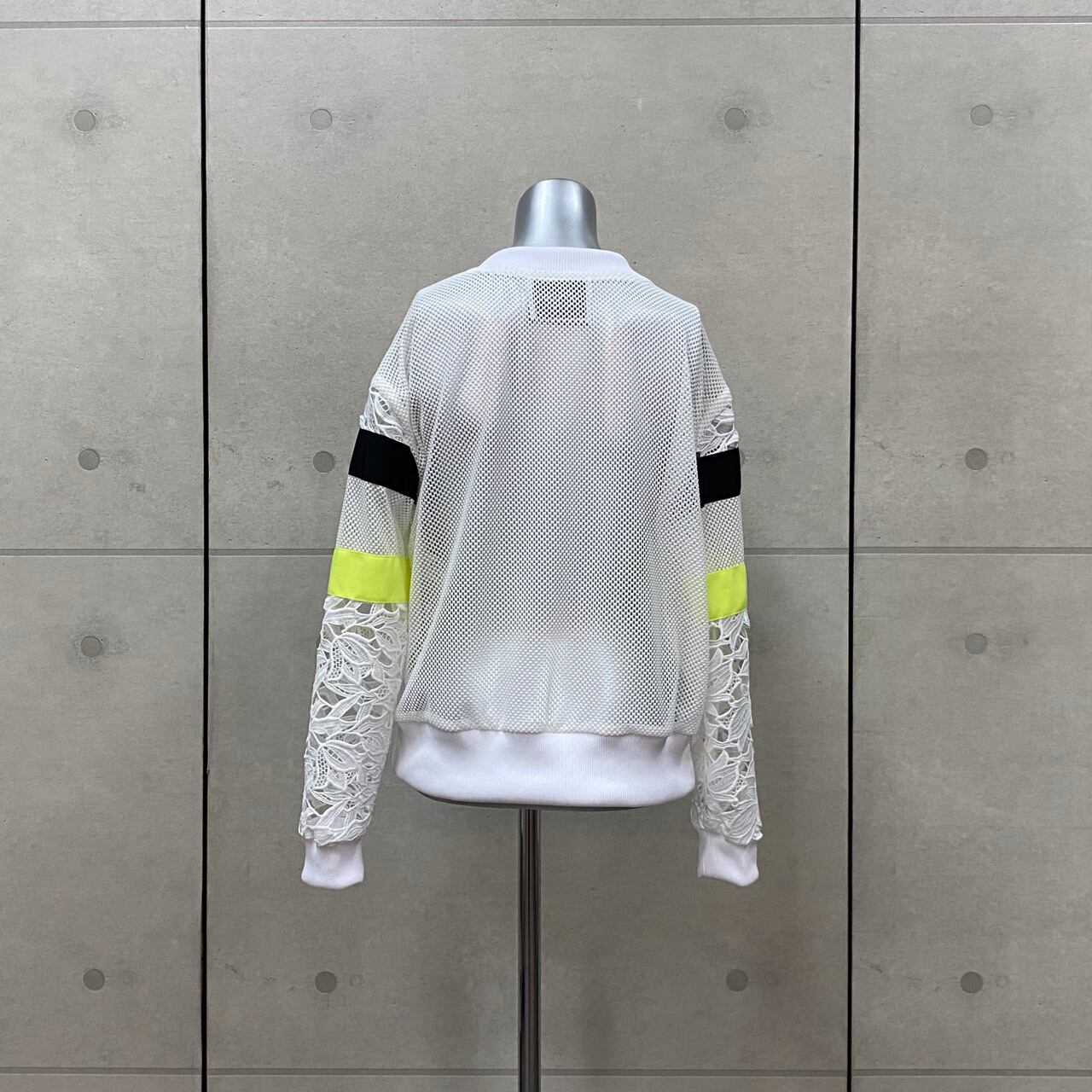 ネオンカラーのリボンボーダーが目を惹くプルオーバーは、メッシュとレースのテイストMIXが楽しい1着です。