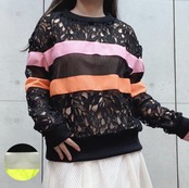 【Adonisisアドニシス】レース×メッシュボーダーラインTOPS ネオンカラー シアー プルオーバー マルチ S21108