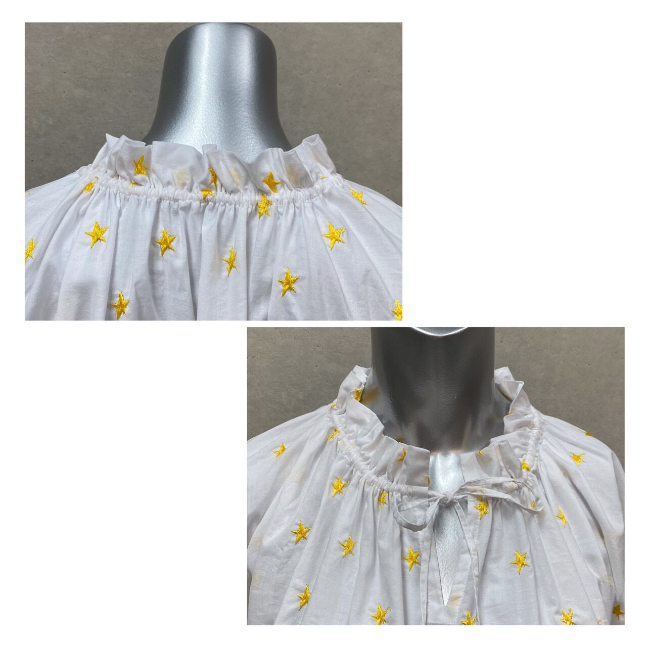 ドスディオサスの人気のブラウスシリーズよりイエローのスター刺繍がポイントのプルオーバーブラウス。