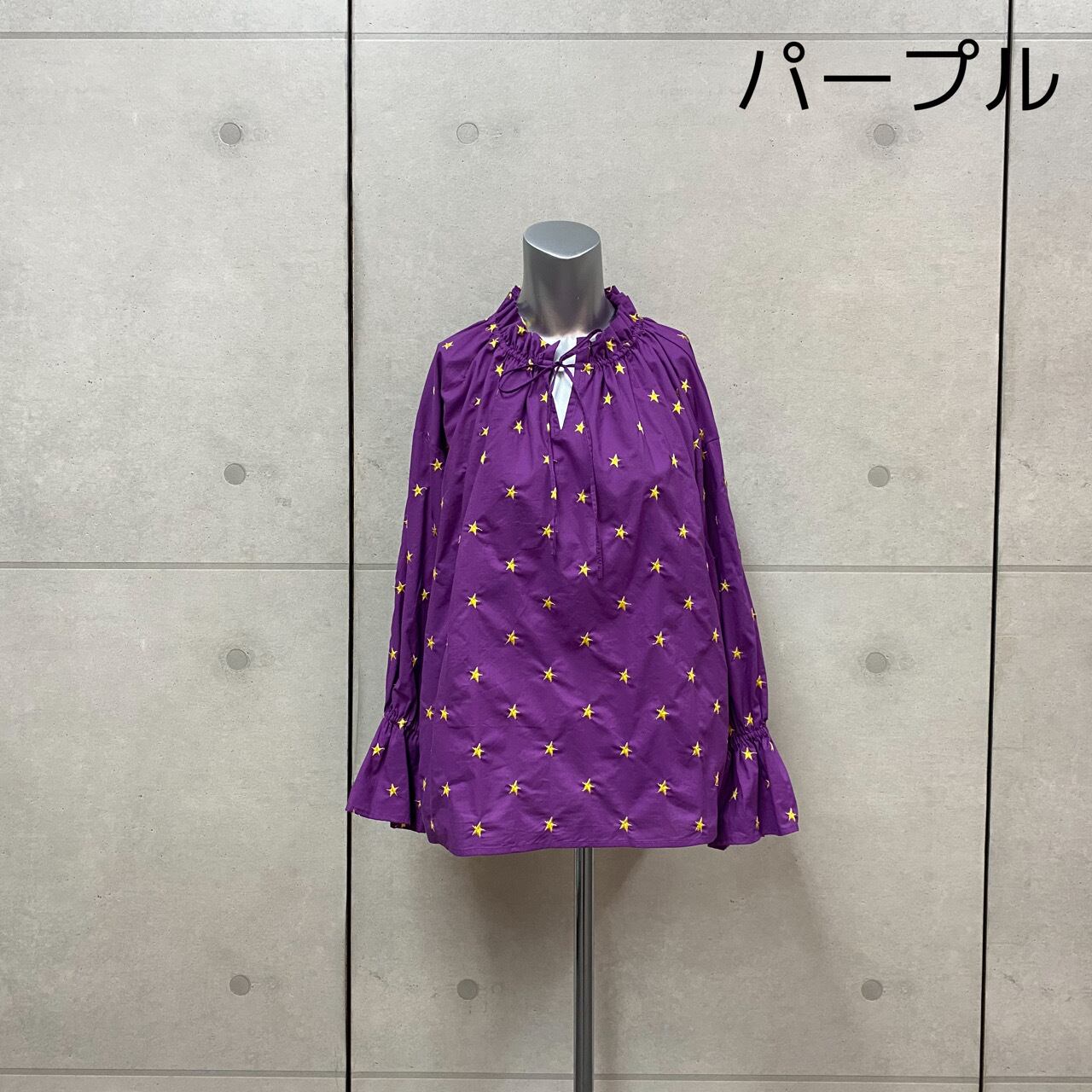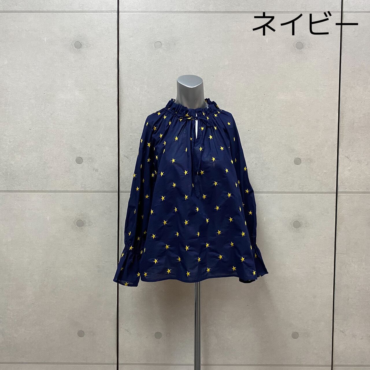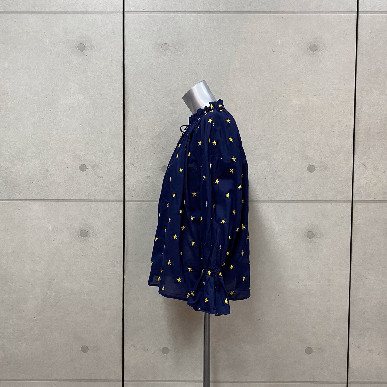 【DOSDIOSAS ドスディオサス】スター刺繍プルオーバーブラウス ギャザー ボーカラー パフスリーブ 綿 星 デザイン ゆったり 大人 七部袖 D7617