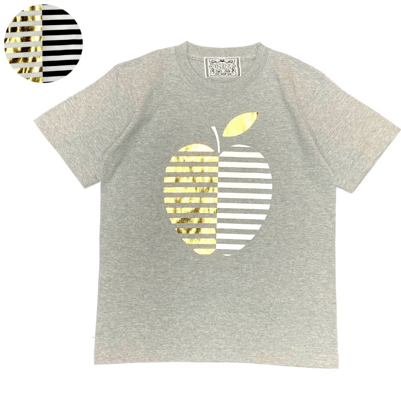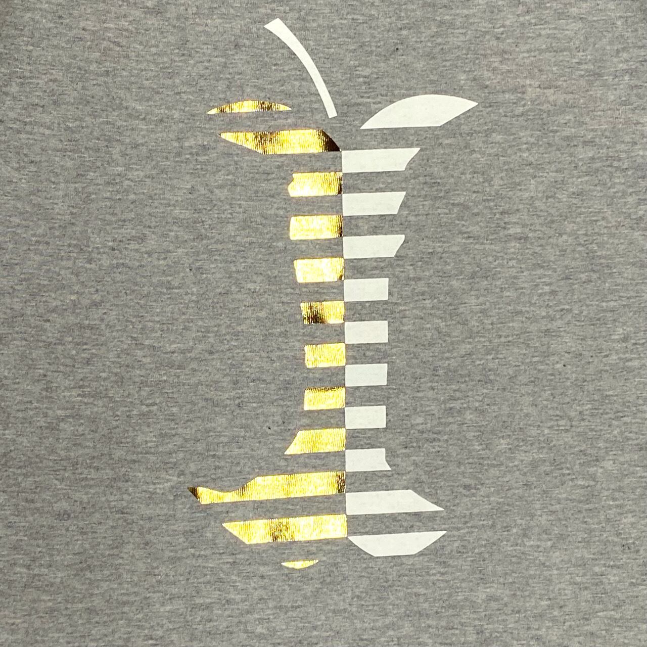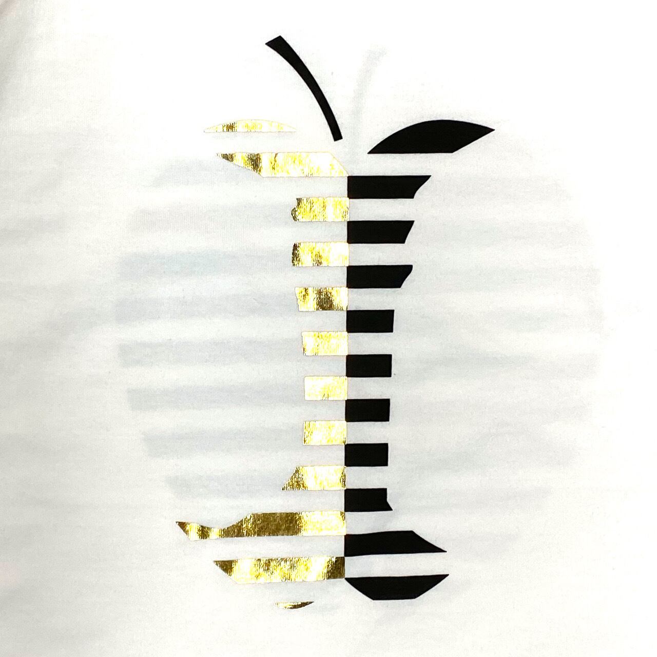 箔で施された、リンゴデザインのTシャツ。