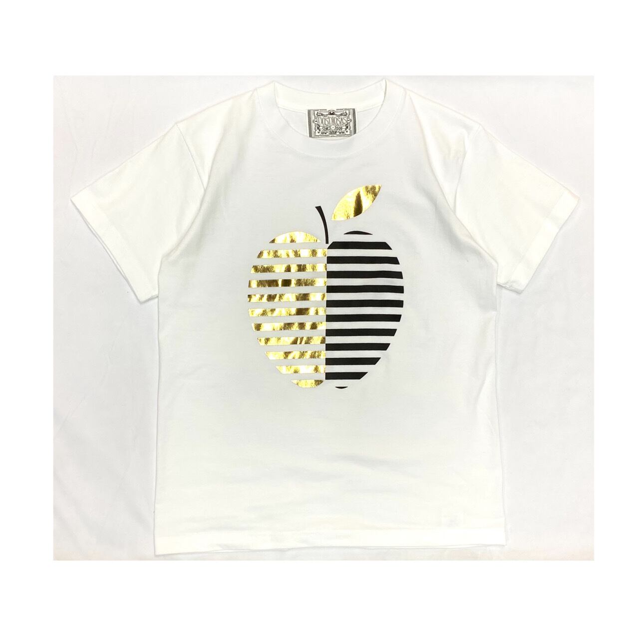 【DOSDIOSAS ドスディオサス】アップルホイルプリントTシャツ リンゴ デザイン 箔プリント シンプル 綿100% 国産 日本製 D7638