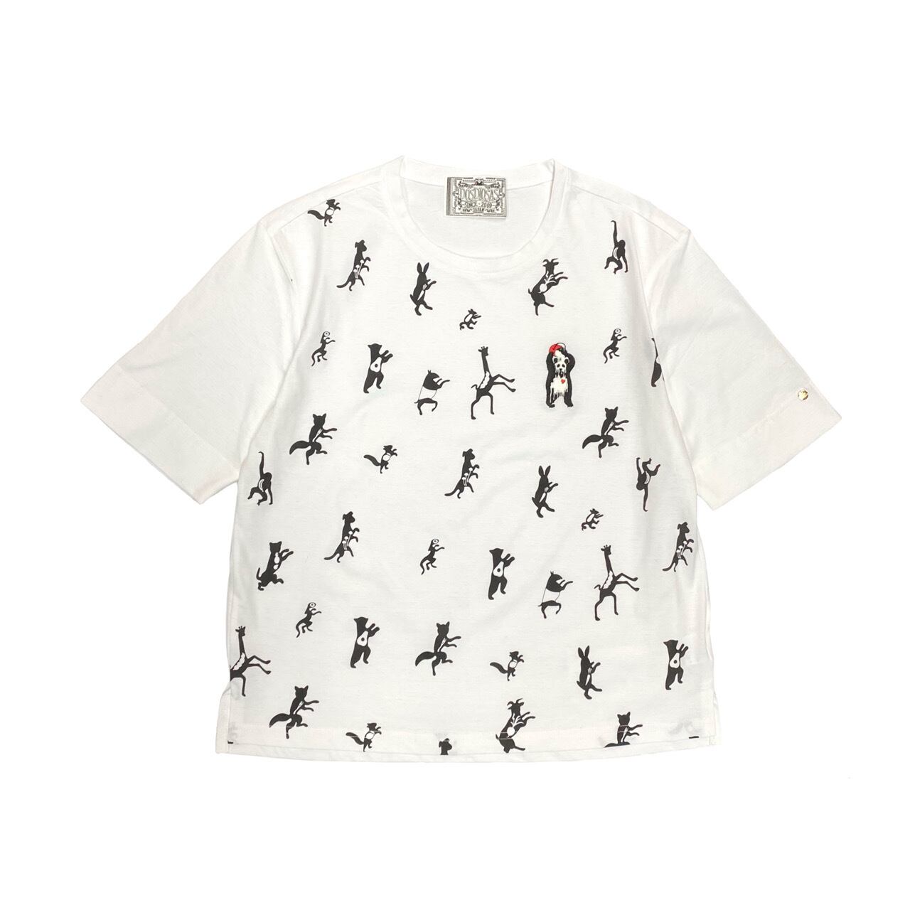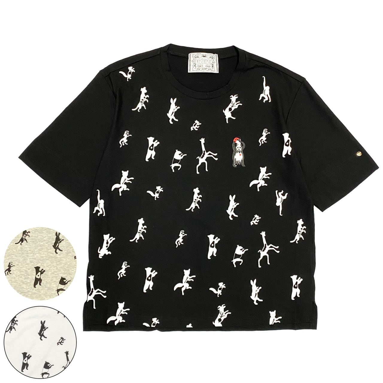 【DOSDIOSAS ドスディオサス】クルーネックアニマルプリントTシャツ 綿100% 国産 日本製 パンダ 刺繍 半袖 カットソー D7633