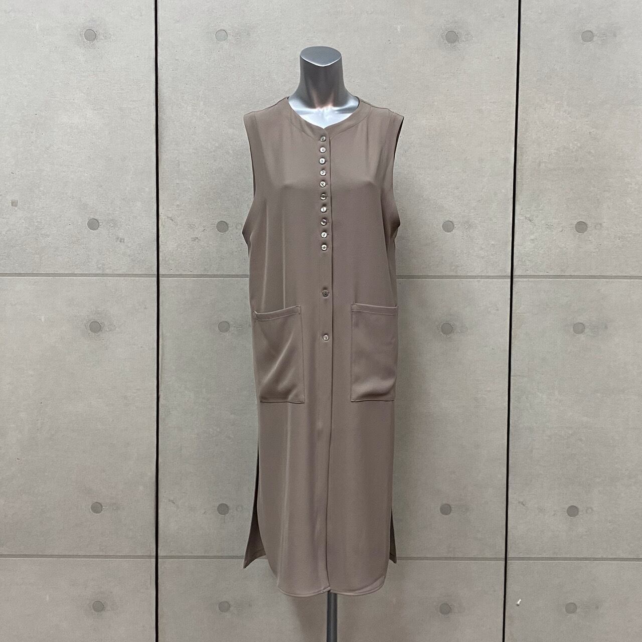 前ボタンデザインが無二な、美シルエットとろみジレベスト。