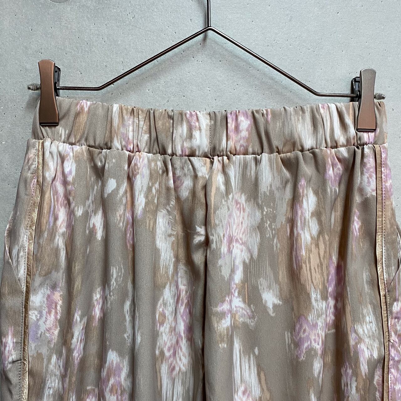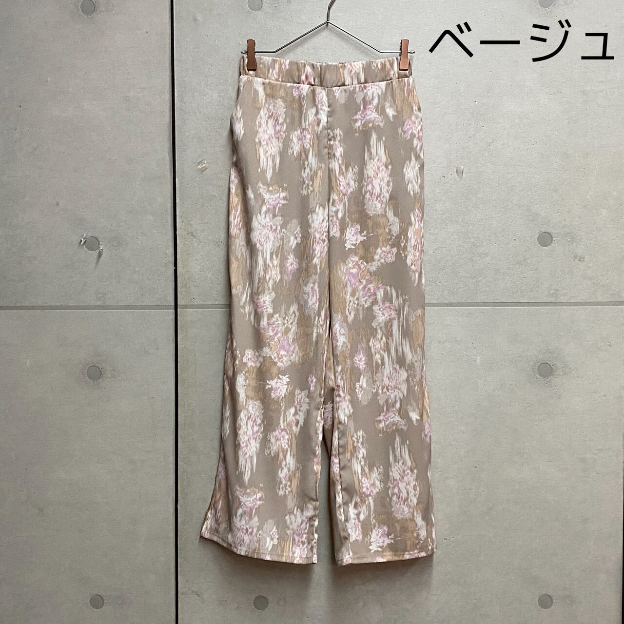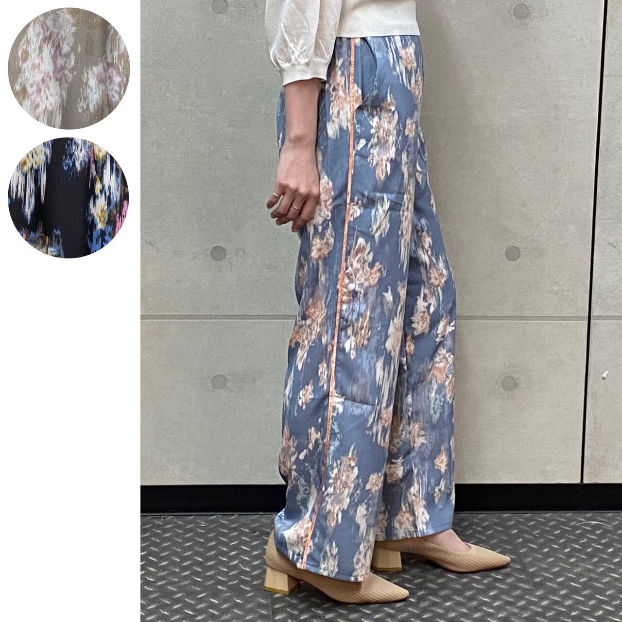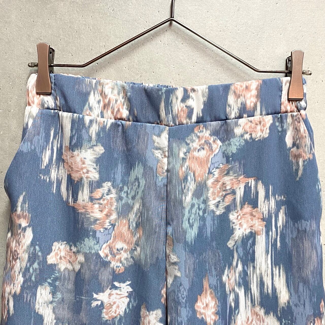 美しく霞んだ花柄を表現したプリントの、美シルエットパンツです。