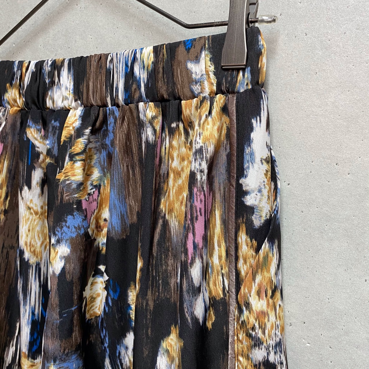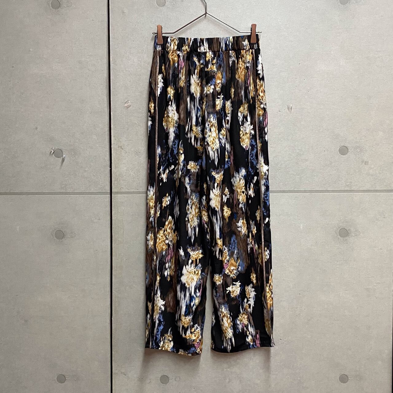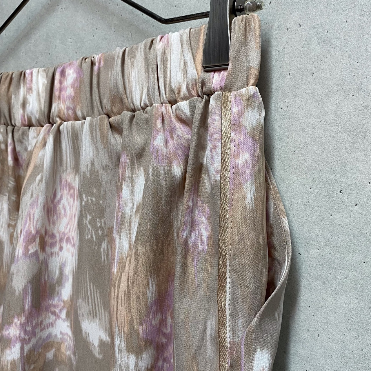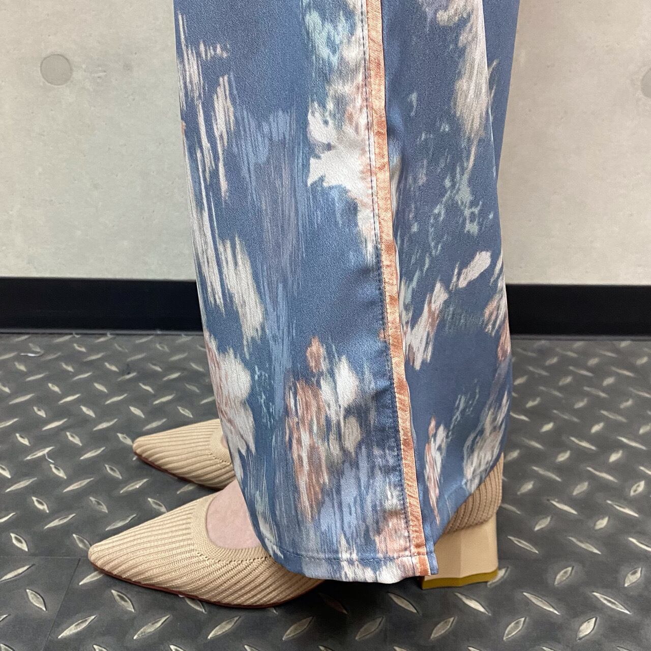 美しく霞んだ花柄を表現したプリントの、美シルエットパンツです。