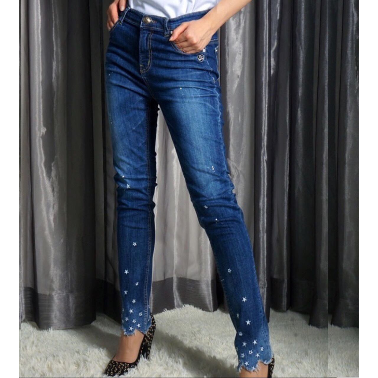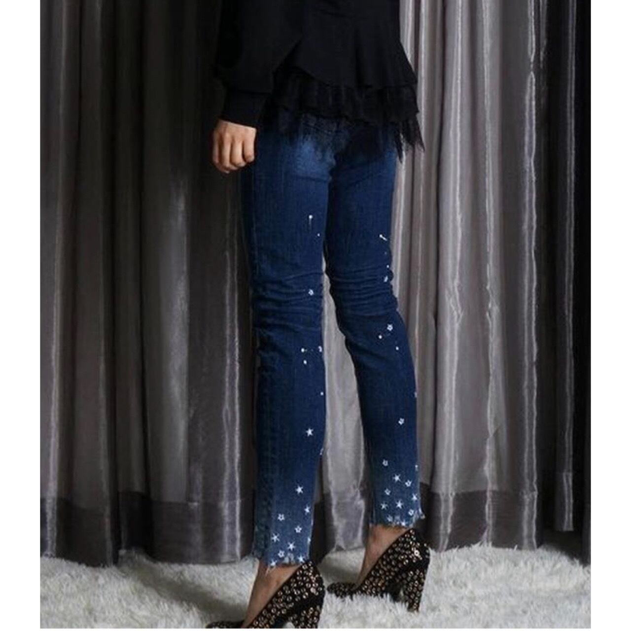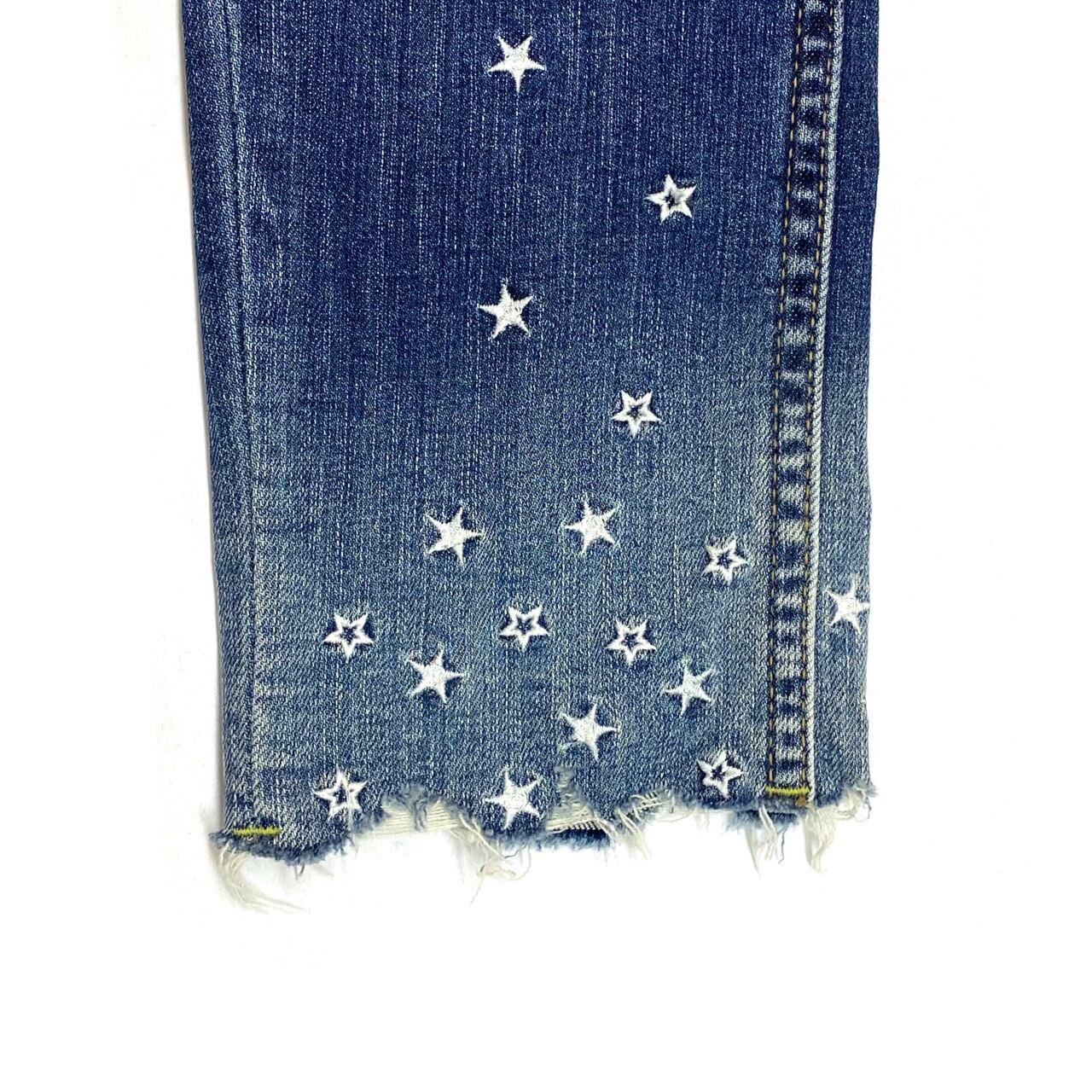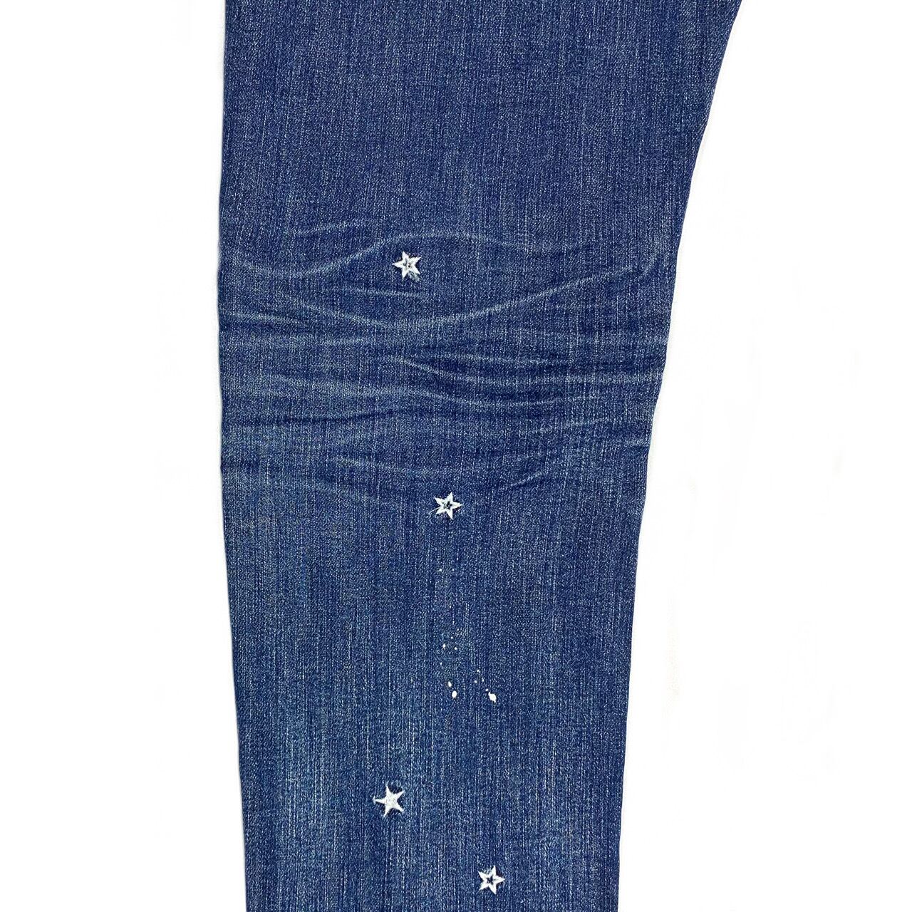 【COOLA クーラ】スター刺繍スキニーデニム 星 ペイント ジーンズ ジーパン ストレッチ インディゴ ブルー シンプル 美脚 35080