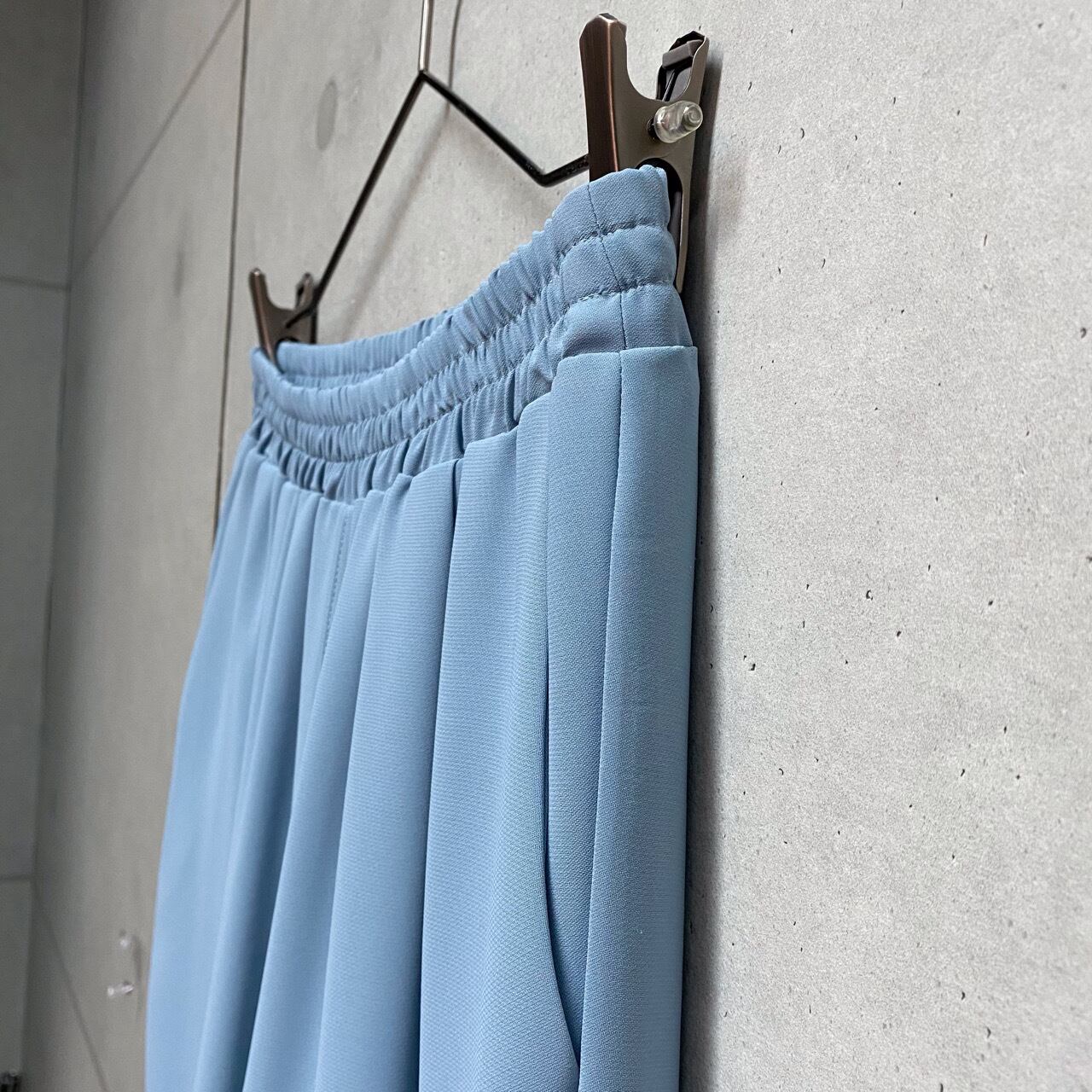 ポリエステルのサラッとした生地感で、落ち感を楽しむ。