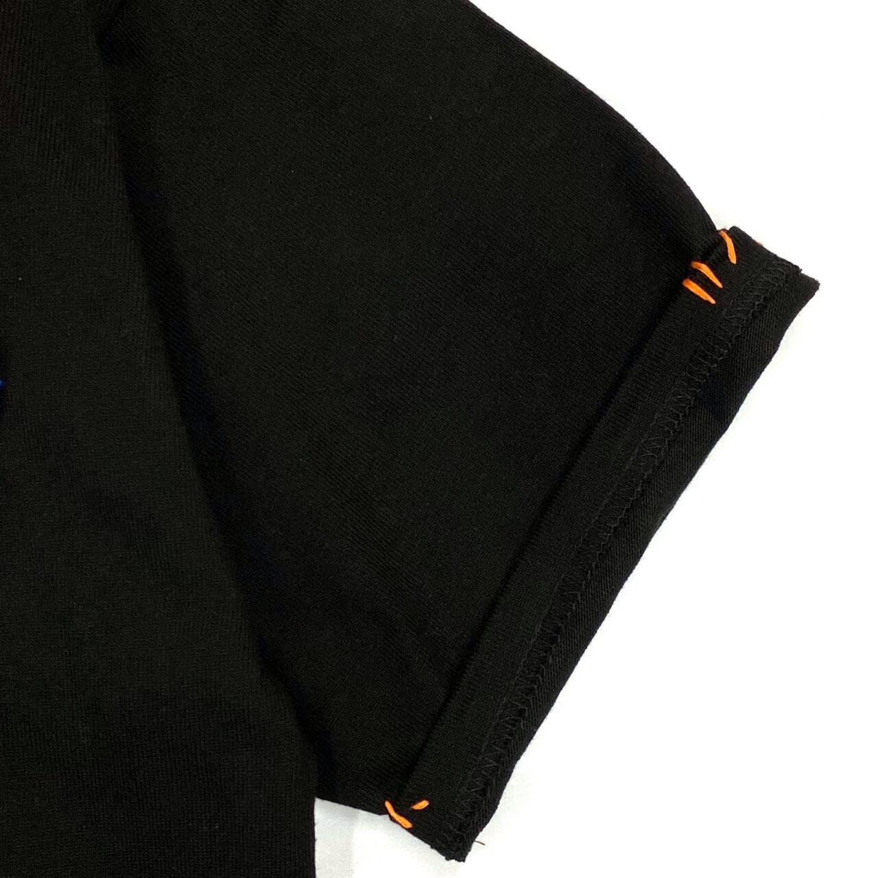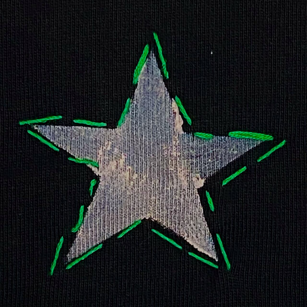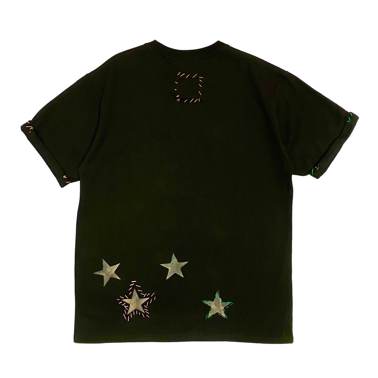 【Days デイズ】刺繍ペイントスターTシャツ アメリカポケット ユニセックス 男女 ハンドメイド 一点もの リメイク 綿 コットン カラフル ブラック 黒 001-0010