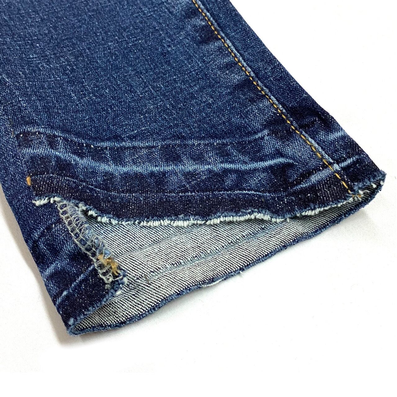 裾が格好良く、絶妙な斜め切りっぱなしのデザインのスキニーデニムです。
