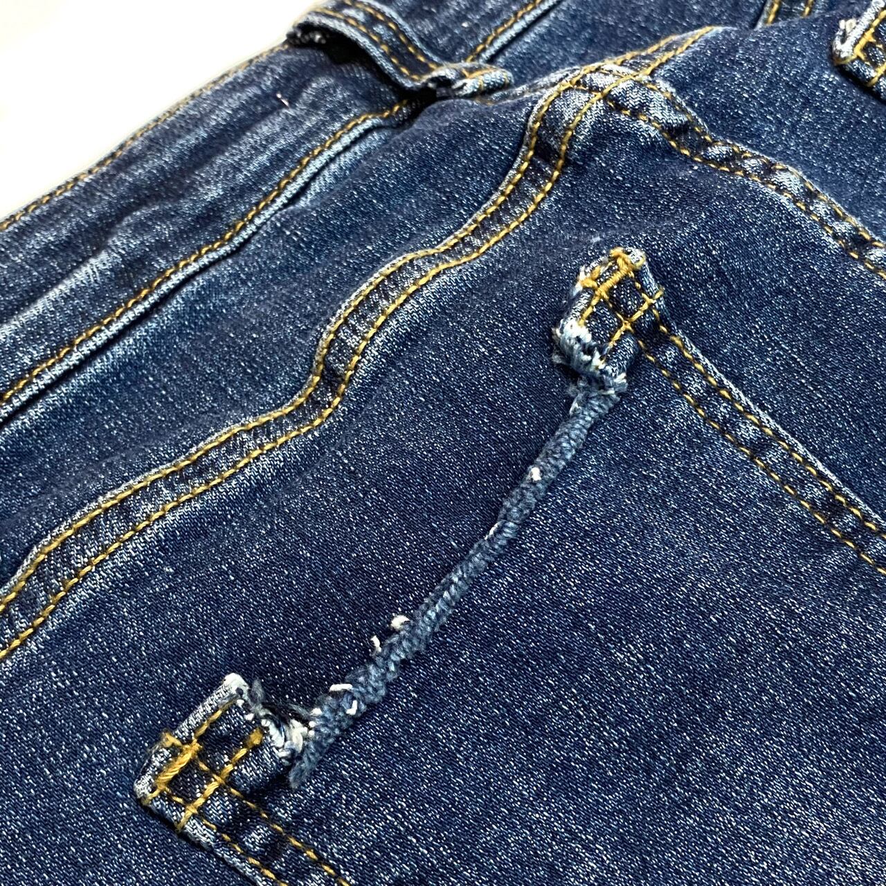 【INDIMARK インディマーク】WJ008 ステップヘム ストレートデニム ジーンズ 裾切りっぱなし ダメージ デザイン インディゴ ブルー ストレッチ ウエストゴム