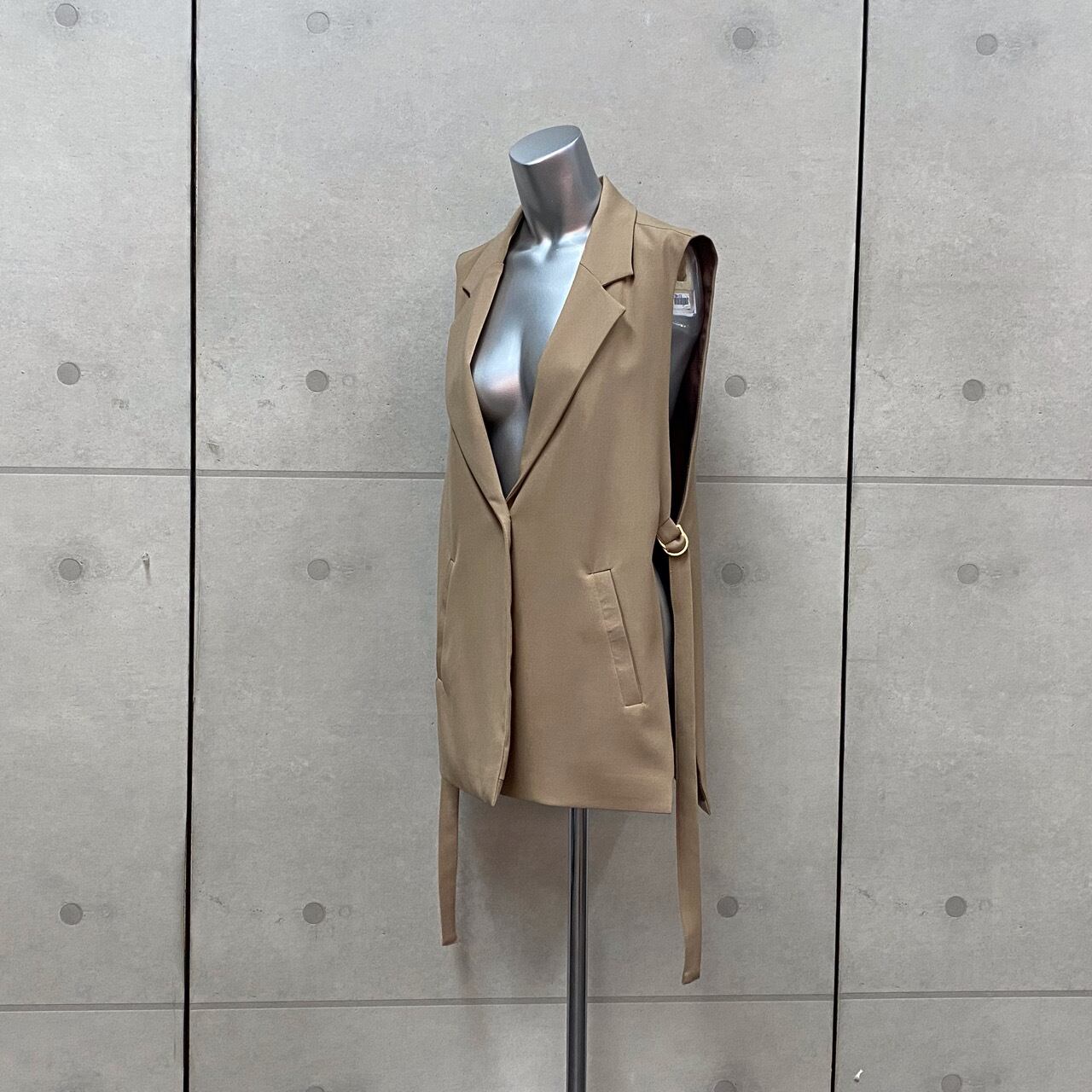 【praia プライア】サイドスリットベスト ジレ テーラー ゆったり ジャケット ベージュ ブラック お尻隠れる LER-2164