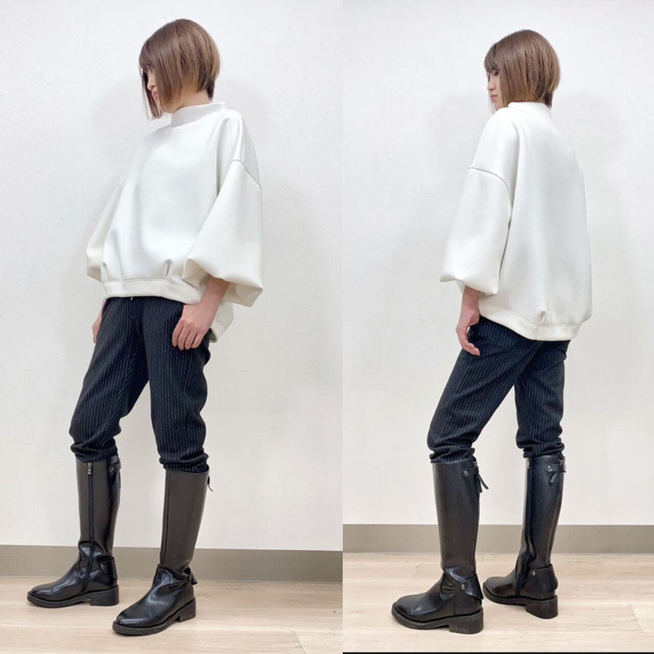 袖のボリューム感やゆるっとしたシルエットが可愛い、ボンディング素材の